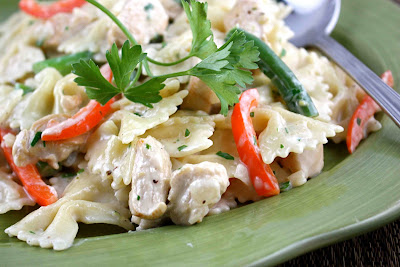 Pasta in Lemon Cream Sauce with Chicken, Greens Beans & Red Pepper